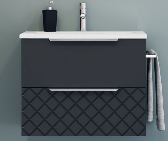 Tboss Quarto 60 AM mosdószekrény, Termék kód: QUAO60AM, 60×52×50 cm, 2 fiókos alsószekrény mosdóval, fali rögzítéssel, többféle fogantyúval és törölközőtartóval.