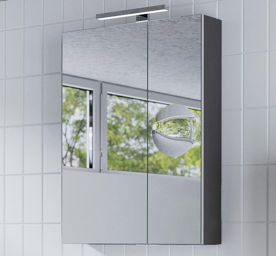 Tboss Senna 60 tükrös felsőszekrény, Termék kód: MBSE605, 60×80×16 cm, 2 ajtós kivitel, 1db 55cm-es led lámpával, piperetükör bal vagy jobb oldalt a kis tükrön, powerbox (1 dugalj és 1 kapcsoló) jobb oldalt belül.