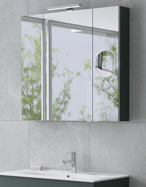 Tboss Senna 90 tükrös felsőszekrény, Termék kód: MBSE905, 90×80×16 cm, 3 ajtós kivitel bal/bal/jobb nyitással, 1db 55cm-es led lámpával, piperetükör bal vagy jobb oldalt a kis tükrön, powerbox (1 dugalj és 1 kapcsoló) jobb oldalt belül.